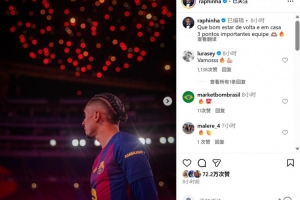 本場(chǎng)比賽也是巴薩回歸諾坎普球場(chǎng)首戰(zhàn),迎來(lái)傷愈復(fù)出的拉菲尼亞在社媒曬照寫(xiě)道:“回家的感覺(jué)真棒!球隊(duì)取得關(guān)鍵三分”