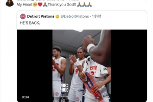 賽后,艾維的母親轉(zhuǎn)發(fā)了活塞官方發(fā)布的賽后慶祝艾維復(fù)出視頻,并配文:我的小心肝??!感謝上帝!