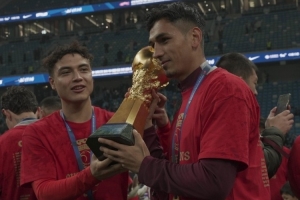 海港后衛(wèi)吾提米江在社媒寫道:“看到獎杯??還是覺得一點也不累,一切都值得。給今年的聯(lián)賽打上了完美的句號。2025.11.22。????”
