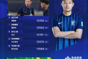 3、達(dá)蘭,武漢三鎮(zhèn),跑動(dòng)距離12191米