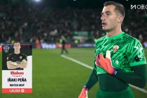 體育資訊11月24日訊 皇馬在本輪西甲對陣埃爾切,埃爾切門將佩尼亞在賽后被官方評為全場最佳球員。