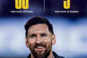 據(jù)統(tǒng)計(jì),38歲的梅西目前進(jìn)球戴帽的場(chǎng)次有60場(chǎng),助攻戴帽的場(chǎng)次有9場(chǎng)。