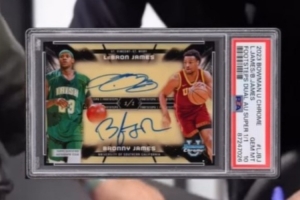 體育資訊11月25日訊 球星卡Topps社媒更新動態(tài),曬出了詹姆斯第一次簽了自己和布朗尼的雙簽名卡時的視頻。