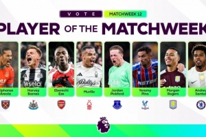 體育資訊11月25日訊 英超第12輪聯(lián)賽已經(jīng)完賽,英超官方也列出了本輪最佳球員的8人候選名單: