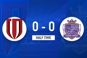 傷停補(bǔ)時1分鐘。上半場比賽結(jié)束,成都蓉城0-0廣島三箭。