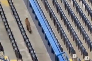 體育資訊11月26日訊 切爾西和巴薩的歐冠比賽即將開始,亞馬遜Prime報道,賽前一只狐貍闖入了斯坦福橋看臺。