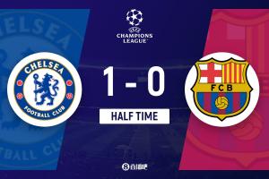 上半場傷停補(bǔ)時(shí)2分鐘,半場結(jié)束,切爾西暫1-0巴塞羅那。