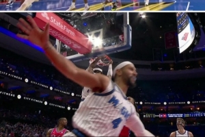 對(duì)此,ESPN評(píng)論道:“薩格斯意欲復(fù)刻韋德和詹姆斯的經(jīng)典空接??。”