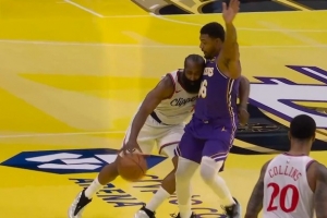 GIF-斯瑪特阻擋犯規(guī) 湖人挑戰(zhàn)失敗