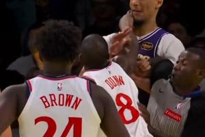 東契奇搶板被推 海斯幫東契奇出頭從背后推搡鄧恩 雙方爆發(fā)沖突