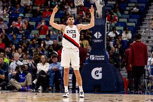 如今的克林根,正一步步成長為波特蘭開拓者隊(duì)重建道路上不可或缺的核心基石球員。早在康涅狄格大學(xué)征戰(zhàn) NCAA 聯(lián)賽時(shí)期,克林根就已經(jīng)展現(xiàn)出了頂級的籃板爭搶能力與籃下護(hù)筐能力。他把這些無縫銜接地帶到了NBA賽場。但現(xiàn)在,克林根同時(shí)也在擴(kuò)展自己的進(jìn)攻武器庫。他正在慢慢摸索如何找到那種微妙的平衡點(diǎn):既要適應(yīng)現(xiàn)代NBA中作為傳統(tǒng)中鋒的生存方式,又不會(huì)因此妥協(xié)自己原有的技術(shù)優(yōu)勢。克林根就在最近波特蘭隊(duì)NBA杯戰(zhàn)勝金州勇士隊(duì)的比賽中創(chuàng)造了個(gè)人生涯新高,全場貢獻(xiàn)22分、10個(gè)籃板和4次助攻的全面數(shù)據(jù)。