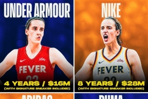 當(dāng)時(shí)Nike提供的是4年2800萬美元附帶簽名鞋條款,UA提供的是4年1600萬美元附帶簽名鞋條款,阿迪提供的是4年600萬美元附帶簽名鞋條款,而彪馬得知克拉克要求至少300萬美元一年后退出了競價(jià)。