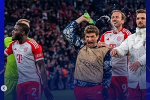 2017年3月十六強(qiáng)戰(zhàn)次回合:沃爾科特首開記錄,科斯切爾尼染紅。萊萬(wàn)扳平比分,羅本、道格拉斯·科斯塔建功,比達(dá)爾雙響,拜仁再次5-1大勝。