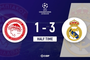 體育資訊11月27日訊 北京時(shí)間4:00,歐冠聯(lián)賽階段第5輪,奧林匹亞科斯vs皇家馬德里,比賽在卡萊斯卡基斯體育場(chǎng)打響!上半場(chǎng),奇奎尼奧幫助奧林匹亞科斯率先破門!隨后姆巴佩7分鐘內(nèi)上演帽子戲法!維尼修斯進(jìn)球被吹;瓊阿梅尼遠(yuǎn)射中橫梁!半場(chǎng)結(jié)束,皇馬暫3-1領(lǐng)先奧林匹亞科斯。