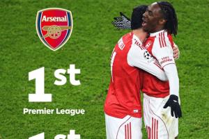 英超中,阿森納6分優(yōu)勢領(lǐng)跑。