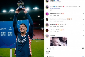 歐冠官方也在賽后將其評(píng)選為本場MVP,他也在賽后通過社媒曬出自己高舉MVP獎(jiǎng)杯的照片并配文:“真主至大!??在歐冠對(duì)利物浦打進(jìn)2球!”