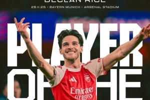 體育資訊11月27日訊 歐冠聯(lián)賽階段第5輪比賽,賴斯踢滿全場,幫助阿森納主場3-1擊敗拜仁。