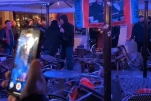 現(xiàn)場(chǎng)畫面顯示,這些球迷在加約集市廣場(chǎng)投擲咖啡館座椅、互相斗毆,導(dǎo)致周邊商鋪窗戶被砸碎,玻璃遍地,附近酒吧被迫緊急停業(yè)。