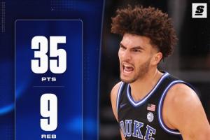 此役,明年NBA狀元熱門&杜克大學(xué)悍將卡梅隆·布澤爾繼續(xù)打出優(yōu)異表現(xiàn),他登場(chǎng)36分鐘18投13中,三分4中2、罰球11中7,狂砍35分9籃板3助攻2搶斷。