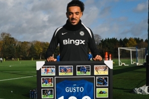 此役是古斯托為切爾西出戰(zhàn)的第100場比賽,他總計打進(jìn)1球,助攻14次。古斯托獲贈藍(lán)軍生涯百場紀(jì)念球衣,切爾西社媒曬出他與紀(jì)念球衣的合照。