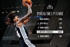 瓦塞爾迎來里程碑,他的三分命中數(shù)來到662記,超越布魯斯·鮑文升至隊(duì)史第四。