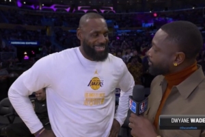 體育資訊11月29日訊 今日,湖人在NBA杯賽中129-119主場擊敗獨(dú)行俠。賽前,湖人前鋒詹姆斯接受了NBA名宿韋德的采訪。