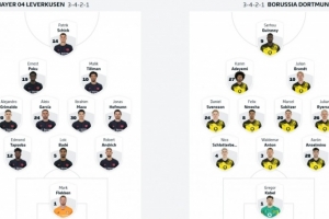 體育資訊11月30日訊 勒沃庫森將在本輪德甲焦點(diǎn)戰(zhàn)迎戰(zhàn)多特蒙德,兩隊(duì)首發(fā)已經(jīng)公布,陣型均為3421: