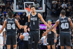 要聊這支馬刺,你永遠(yuǎn)繞不開文班亞馬,就像聊三分球繞不開庫(kù)里一樣。經(jīng)過兩年進(jìn)化和少林特訓(xùn),22歲的文班已顯現(xiàn)出超巨之姿,場(chǎng)均26分12籃板4助攻3.6蓋帽,真實(shí)命中率61%。開賽前五場(chǎng)更是轟出了30分15籃板5蓋帽的場(chǎng)均數(shù)據(jù),帶領(lǐng)馬刺豪取五連勝,把仗著內(nèi)線深度試圖單防文班的獨(dú)行俠打出33分分差,讓所有球隊(duì)都不敢單防。