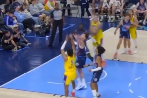 GIF-布朗尼變向轉(zhuǎn)身后仰連招壓哨命中