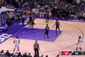 GIF-亞當(dāng)斯單手帥氣抓帽 推反擊后接杜蘭特分球暴扣