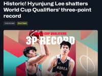 日前,李賢重在對陣中國男籃的比賽中砍下33分,帶領(lǐng)球隊在中國隊的主場贏得世預賽第1場勝利。全場比賽他投中9記三分球,打破了世界杯資格賽階段單場三分球最高紀錄,成為歷史第1人。