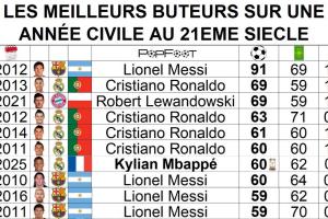 體育資訊12月02日訊 2025年接近尾聲,皇馬前鋒姆巴佩已經(jīng)在本年度打進(jìn)了60粒進(jìn)球,在21世紀(jì)自然年進(jìn)球榜可以排到并列第6位。