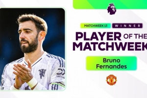 體育資訊12月2日訊 英超官方消息,曼聯(lián)中場B費(fèi)當(dāng)選第13輪英超的最佳球員。