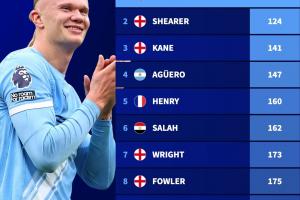 體育資訊12月03日訊 曼城vs富勒姆第17分鐘,哈蘭德破門(mén),這是他生涯英超百球!哈蘭德成為史上最快達(dá)成英超百球的球員!