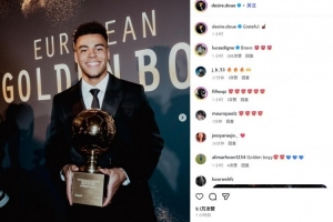 體育資訊12月3日訊 在《都靈體育報》主辦的歐洲金童獎頒獎典禮上,杜埃領(lǐng)取了2025年金童獎杯。