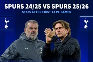 熱刺上賽季、本賽季英超前14輪數(shù)據(jù):