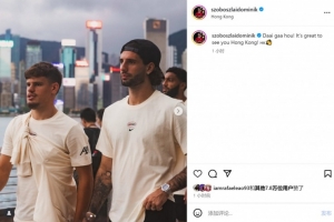 利物浦抵達(dá)中國香港參加季前賽,索博斯洛伊社媒曬出與科爾克茲的合照,配文:“大家好(Daai gaa hou)!很高興見到你,中國香港!”