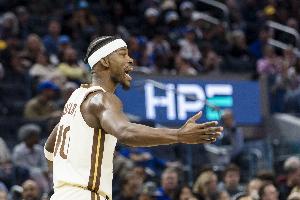 本場(chǎng)比賽,勇士殺傷力不夠,主場(chǎng)作戰(zhàn)的他們?nèi)?duì)僅獲得10次罰球,命中8個(gè),巴特勒全場(chǎng)1罰1中。