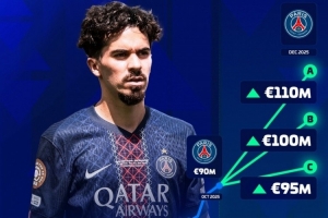 下一篇: 德轉(zhuǎn)確定維蒂尼亞身價(jià)將上漲:最高1.1億歐元,最低9500萬歐元