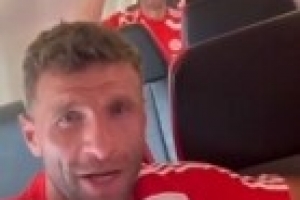 賽前穆勒秀出一段在飛機(jī)內(nèi)拍攝的視頻,他表示即將飛往比賽城市亞特蘭大,大家是否準(zhǔn)備就緒,凱恩回答準(zhǔn)備好了,并喊了一聲“siu”。