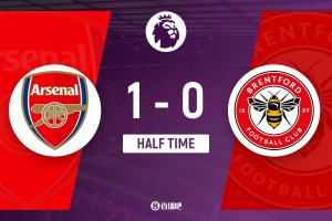 上半場補(bǔ)時3分鐘,阿森納1-0布倫特福德。