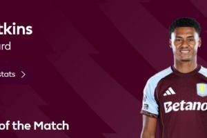 本場(chǎng)比賽沃特金斯梅開二度,成為球隊(duì)逆轉(zhuǎn)最大功臣,賽后他也當(dāng)選英超官方球迷票選全場(chǎng)最佳球員。
