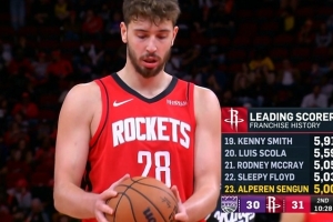 他也是火箭隊史第23個得分破5000的球員。