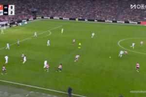 西甲第19輪,皇馬3-0客勝畢爾巴鄂競技。比賽第56分鐘,姆巴佩在己方半場背身拿球被犯規(guī),主裁吹哨,卡馬文加在對方半場開球給到姆巴佩,這時主裁吹哨示意回到犯規(guī)地點(diǎn)開球。在死球狀態(tài)下,姆巴佩穿襠戲耍了撲過來的畢巴后衛(wèi)博伊羅,博伊羅憤怒推翻了姆巴佩,主裁趕過來將姆巴佩教育了一番,姆巴佩雙手指自己表示不解。
