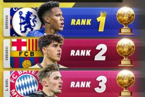 體育資訊12月04日訊 Score90列出了2026年金童排名預測,埃斯特旺居首,庫巴西、卡爾分列二三。