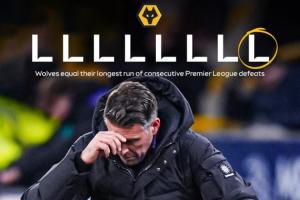 本賽季英超,狼隊14輪未嘗勝績,2平12負僅得2分,五大聯(lián)賽“獨一檔”,意甲(維羅納)和德甲(美因茨)的墊底球隊都有6分,西甲(皇家奧維耶多)和法甲(歐塞爾)的墊底隊拿到了9分。