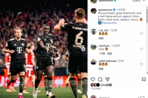 體育資訊12月4日訊 德國(guó)杯1/8決賽,于帕梅卡諾踢滿全場(chǎng),拜仁客場(chǎng)3-2擊敗柏林聯(lián)合,晉級(jí)下一輪。