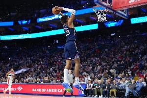 76人雙向前鋒巴洛上半場出戰(zhàn)17分鐘,5中3,三分1中0砍下6分9籃板2助攻2蓋帽,正負值+22。