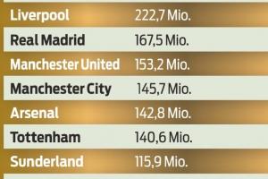 體育資訊7月23日訊?知名拜仁自媒體號(hào)Bayern & Germany轉(zhuǎn)載了一則今夏足壇在支出上排在前列的俱樂(lè)部盤點(diǎn),拜仁被列在了最下面作為對(duì)比。