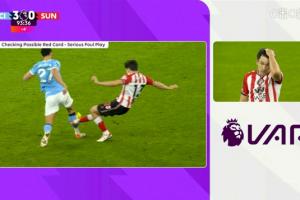 VAR介入,裁判觀(guān)看回放后改判直紅。